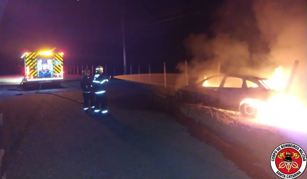 Um incêndio tomou conta de todo um veículo Focus na noite de quarta-feira (3), por volta de 21h13, na Rodovia Pedro Meriizio, bairro Pedras Grandes, em Botuverá.