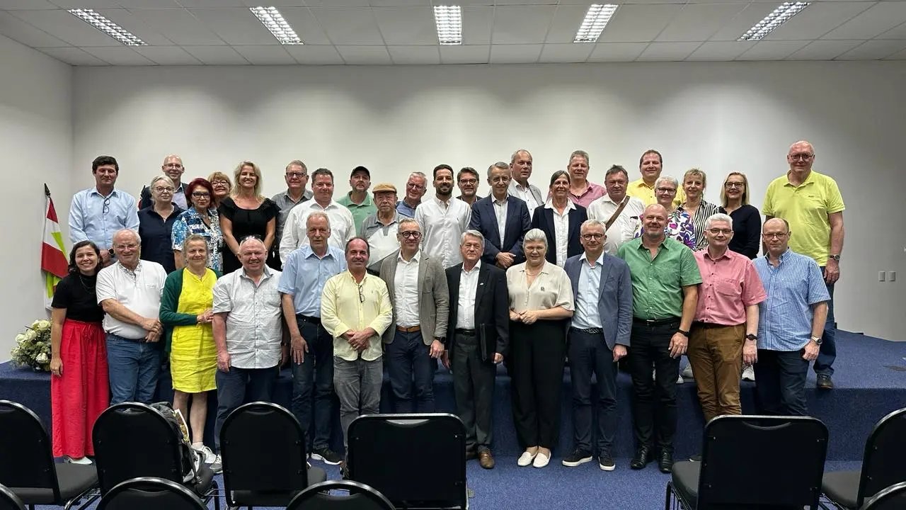 Na ocasião, representantes dos 14 municípios receberam os alemães que vieram a Santa Catarina para celebrar os 200 anos de imigração alemã no Brasil. A reunião integra a programação oficial das comemorações alusivas à marca e contou com a presença da Comissão Organizadora.