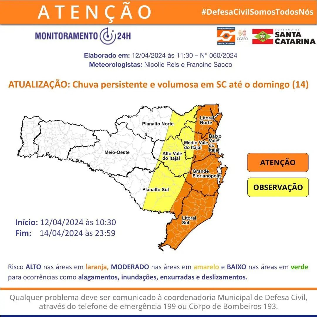 É importante que a população fique atenta aos comunicados oficiais do órgão e mantenha-se informada sobre a situação climática na região.