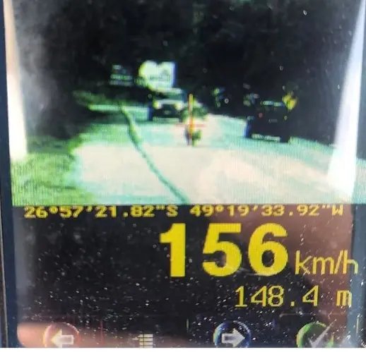 Na tarde da última quinta-feira (11), a Polícia Rodoviária Federal estava realizando uma fiscalização na BR-470, quando flagrou uma moto com placas de Curitiba andando a 156 quilômetros por hora, quase o dobro da velocidade máxima permitida para o local, que é de 80 km/h. O registro foi feito na região da cidade de Rodeio.
