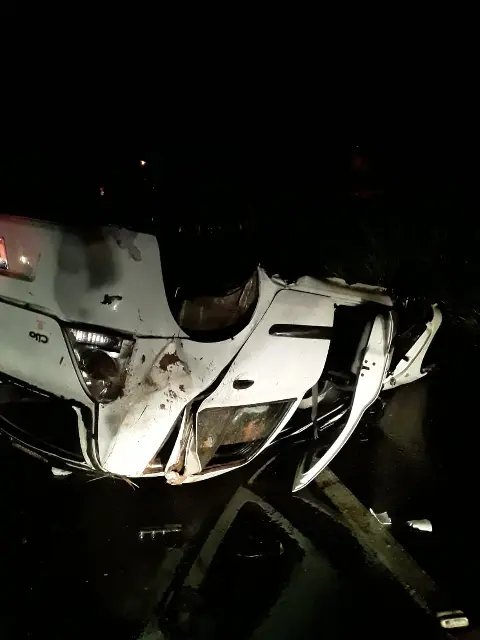 O veículo Renault Clio, com placas de Balneário Camboriú, veio por sair da pistar e logo em seguida acabar capotando.