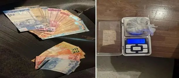 Durante buscas por mais drogas dentro da casa, foram encontradas um total de 39,6 gramas de crack, 7,4 gramas de cocaína, 9,9 gramas de maconha, um aparelho celular e 490,00 reais em dinheiro.