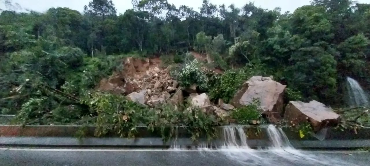 Na noite deste domingo (14), a Arteris Litoral Sul divulgou em suas redes sociais que segue bloqueado o trânsito na BR-101 na região do Morro dos Cavalos em Palhoça. Uma queda de barreira de pedras e árvores ainda na noite de sábado (13) fez com que o trânsito fosse paralisado.