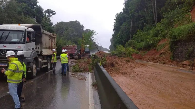 Ainda segundo a Arteris Litoral Sul, ainda não se tem uma previsão de liberação da via. A concessionária que administra a rodovia orienta os motoristas para que evitem pegar a estrada e busquem locais seguros para parar. Durante a tarde, imagens foram divulgadas mostrando equipes no local com maquinários tentando remover as barreiras da via.
