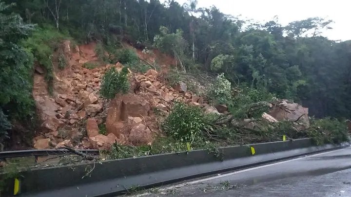 Desde a noite de sábado (13), a equipe da Arteris Litoral Sul vem trabalhando na limpeza da via, mas por conta das chuvas que ainda afetam a região, o processo vem se tornando demorado.