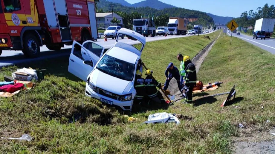 Os bombeiros realizaram o resgate da motorista e, após os primeiros atendimentos, ela foi encaminhada pelos socorristas do SAMU ao Hospital de Gaspar.