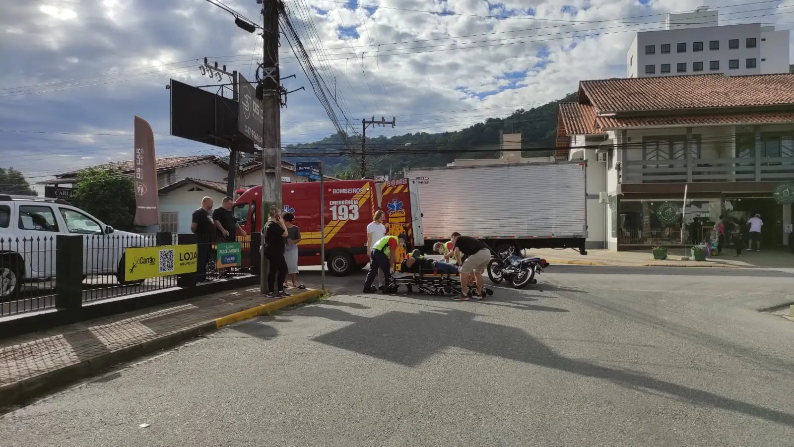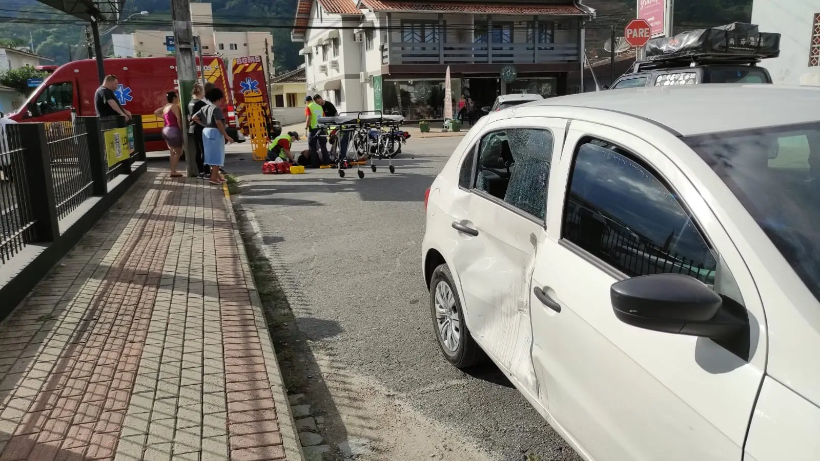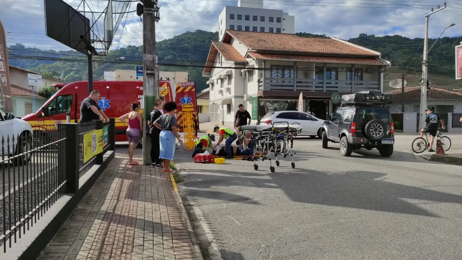 Uma mulher foi atropelada ao atravessar a rua no Centro de Brusque. O acidente aconteceu na manhã desta quarta-feira (24), por volta de 8h, no cruzamento da Avenida Arno Carlos Gracher, a beira rio, próximo ao Sesc.