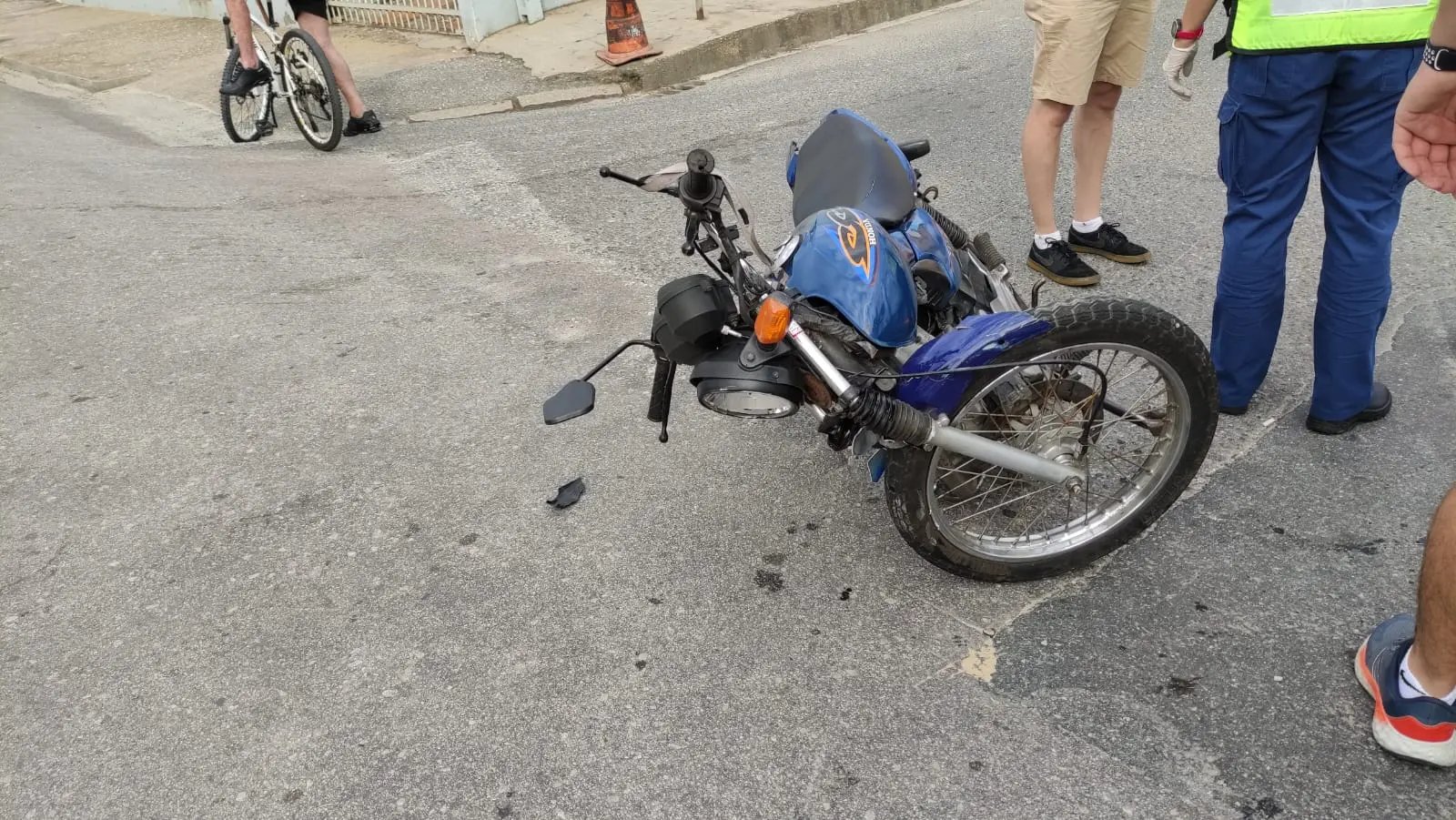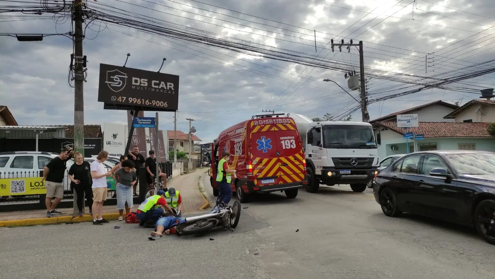 O Corpo de Bombeiros esteve no local e encaminhou o moociclista para o hospital.