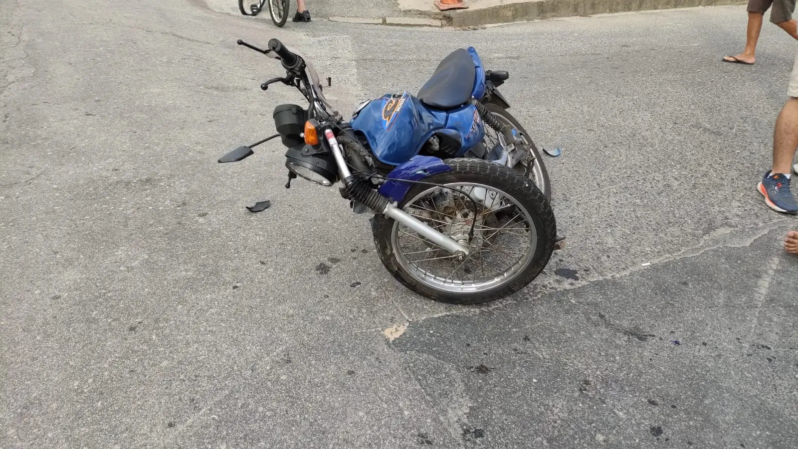 Através das imagens, é possível ver o estado em que a moto ficou, com a frente retorcida.