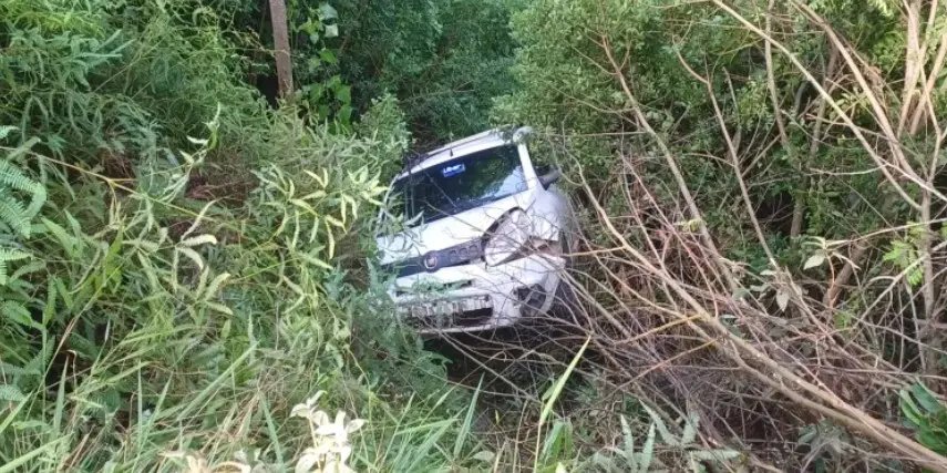 Um veículo Fiat Uno saiu de pista e colidiu de frente contra um muro, logo em seguida engatando ré e caindo em uma ribanceira. O fato foi registrado por volta de 15h57 deste sábado (27), no bairro Rio do Braço, em São João Batista.