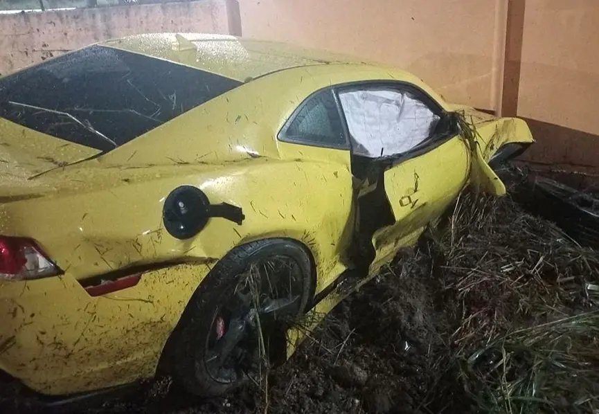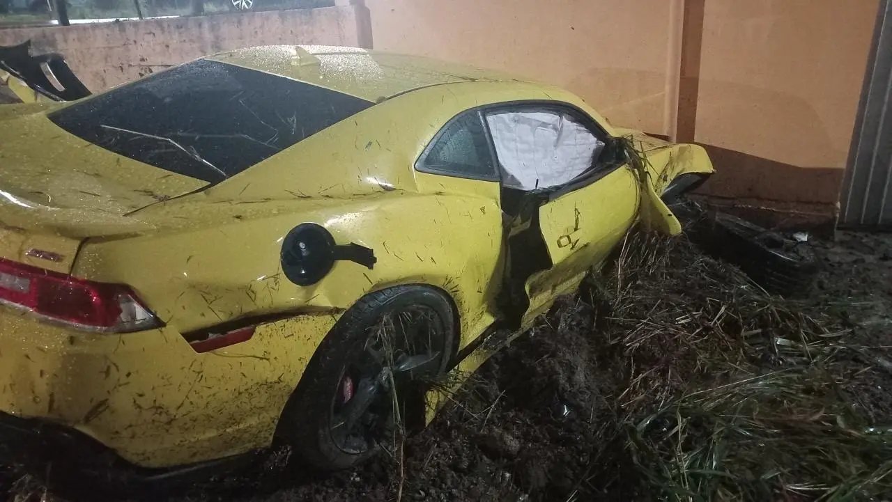 Imagens de uma câmera de segurança registraram o momento do acidente em que um Chevrolet/Camaro, que seguia de Gaspar a Brusque, colidiu contra o muro após saída de pista. O fato ocorreu por volta das 02h34 na rodovia Ivo Silveira, no bairro Bateias, em Gaspar.