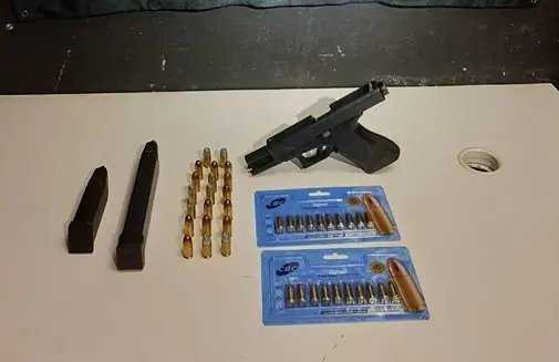 Diante das suspeitas de haver algo ilícito dentro do veículo, pelos relatos e pela tentativa frustrada de fuga, foi realizada uma busca no carro, onde foi localizada embaixo do banco do motorista uma pistola marca Glock calibre .45, 20 munições de 9mm e dois carregadores de .45, um com capacidade para 25 munições e outro com capacidade de 13 munições. A arma possuía "seletor de rajadas".