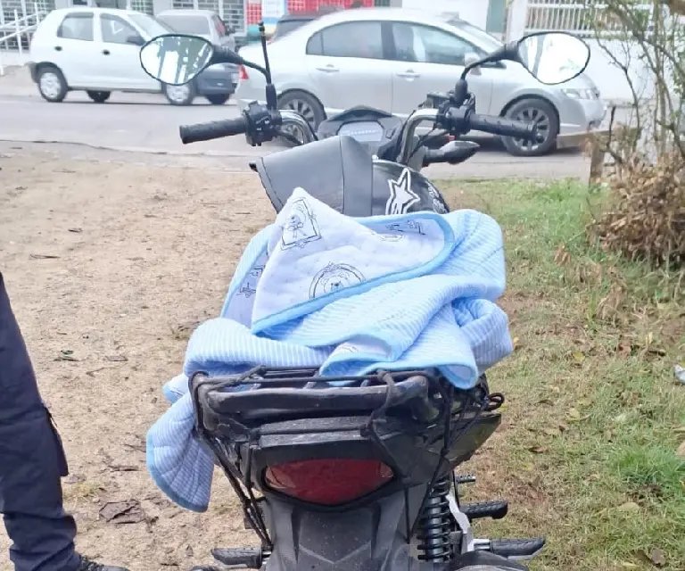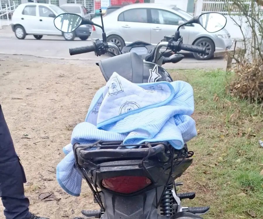 Diante da situação, o condutor foi autuado por não possuir CNH e também por transportar uma criança menor de 10 anos em uma motocicleta.