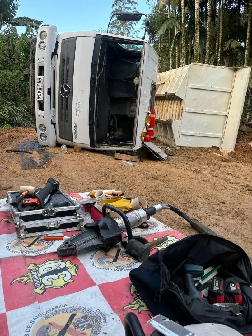 Segundo informações do Corpo de Bombeiros Voluntários de Ilhota, a vítima, um homem de 70 anos, foi encontrada no interior do caminhão com dores no tórax e coluna.