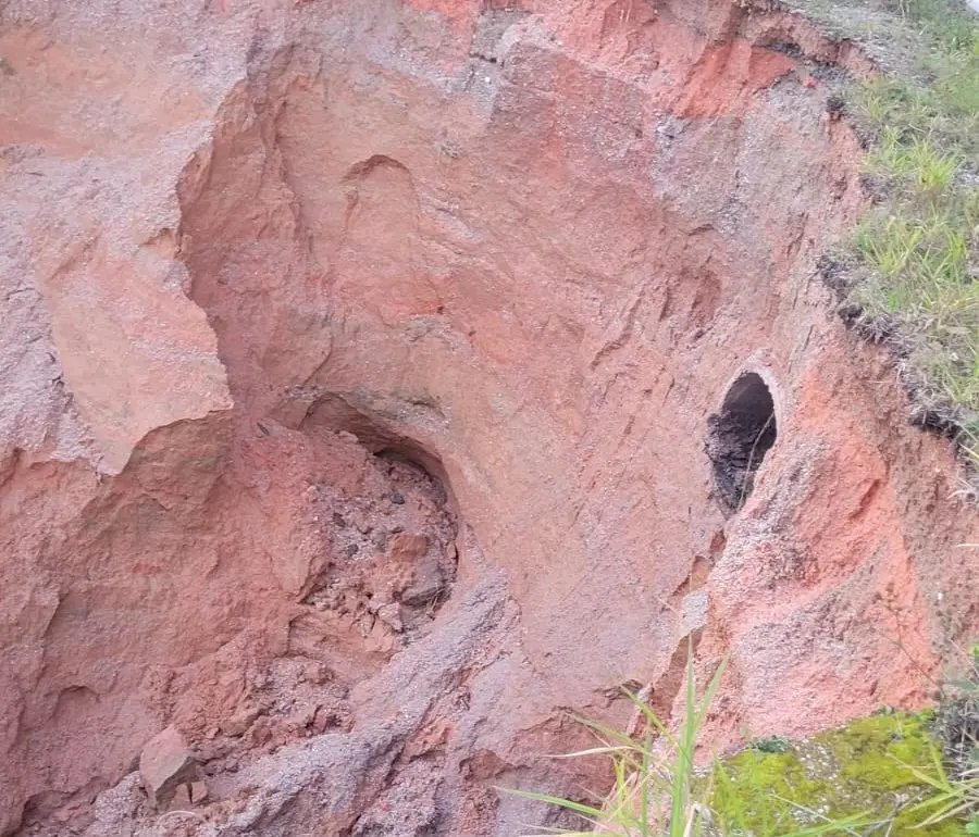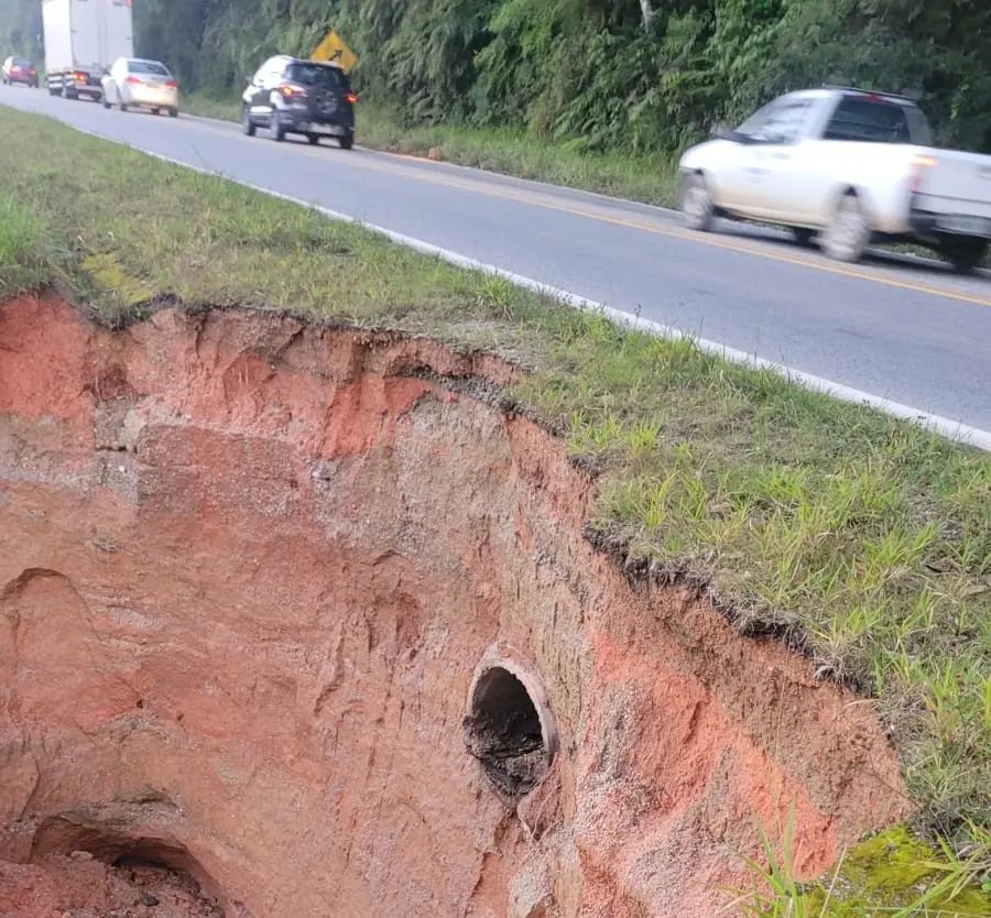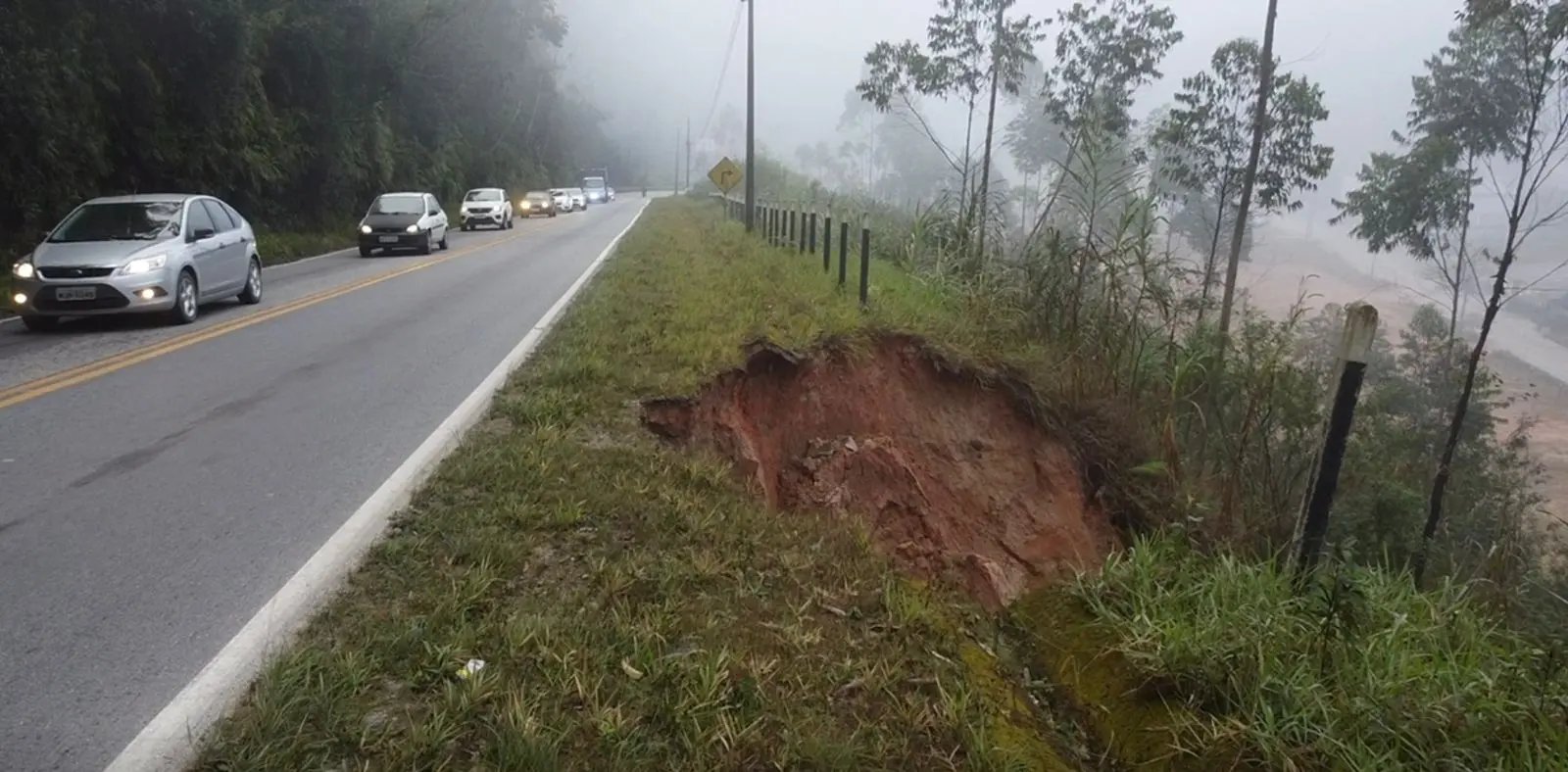 A Rodovia Gentil Batistti Archer apresenta um problema que já perpetua há algum tempo. Em um ponto da via, sentido Nova Trento, há um deslizamento de terra (veja nas imagens).
