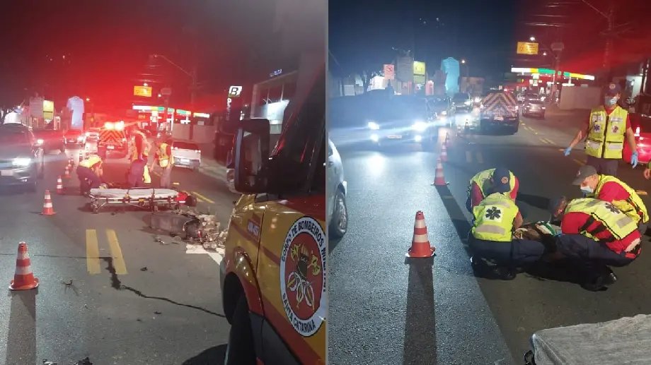 Uma idosa ficou gravemente ferida após ser atropelada por uma moto na noite deste sábado (27) em Blumenau. O acidente, que também deixou o motociclista ferido, ocorreu por volta das 18h47 na rua General Osório.