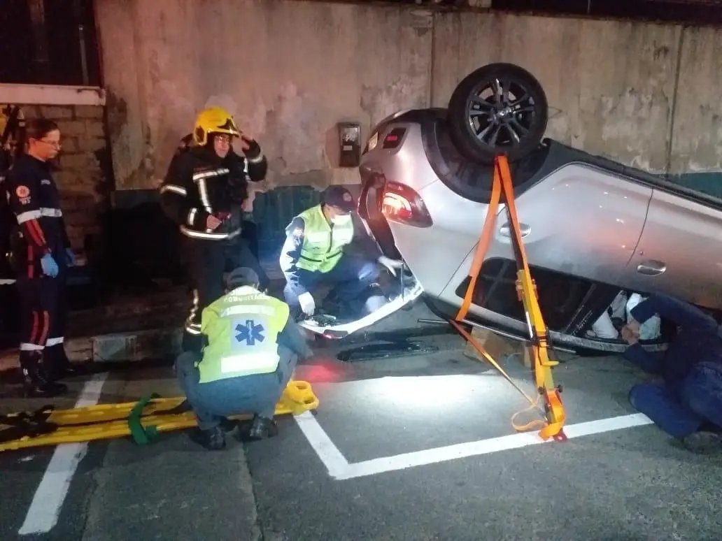 Um capotamento na madrugada deste domingo (28) deixou duas pessoas feridas em Balneário Camboriú. O acidente ocorreu por volta das 05h09, na rua 500 entre a 4ª Avenida e a Avenida do Estado.