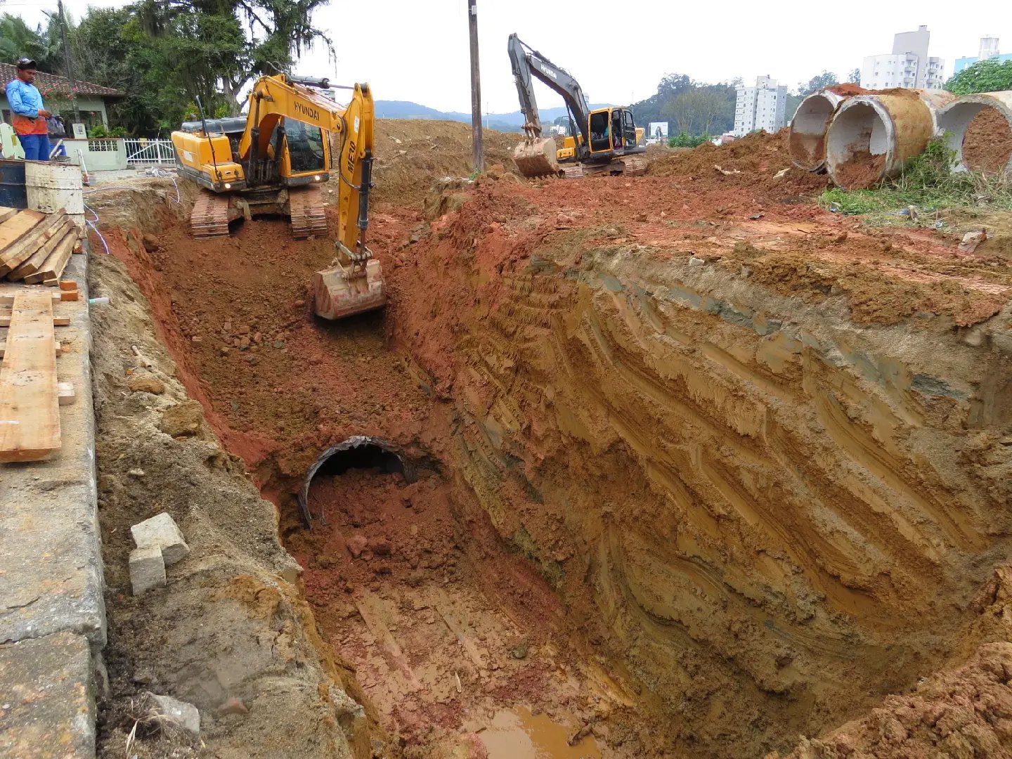A escavação também tem sido um grande desafio devido à natureza do solo, composto de barro e lama, material inadequado para ser reutilizado na recomposição do pavimento. Dessa forma, é necessário sua substituição por um material de aterro de melhor qualidade, prevenindo futuros problemas na pavimentação.