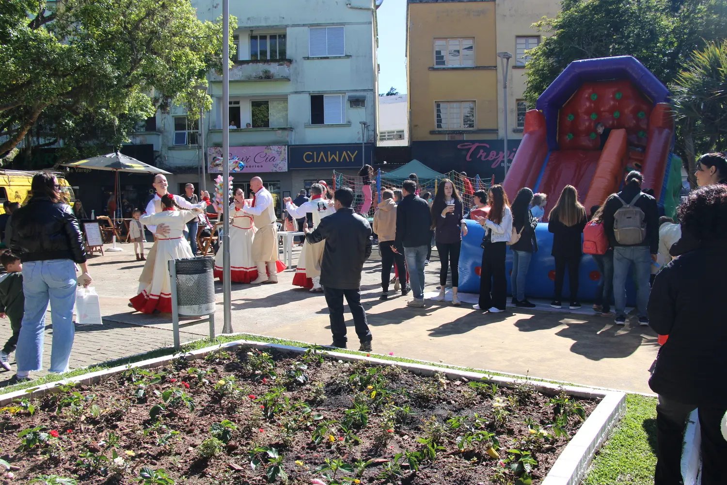 O Sábado Fácil, realizado pela Câmara dos Dirigentes Lojistas de Brusque (CDL Brusque), neste dia 10 de agosto, reuniu diversas famílias na praça Barão de Schneeburg. A população pode usufruir de diversos serviços gratuitos como consultas de crédito no SPC e Serasa, orientações de saúde, manutenção e limpeza de óculos, teste de acuidade visual, apresentações de dança e sorteio de brindes. Já as crianças se divertiram com jogos educativos, cama elástica, pintura facial, trenzinho e jogos de mesa. Além disso, o comércio local atendeu em horário estendido até às 17 horas.