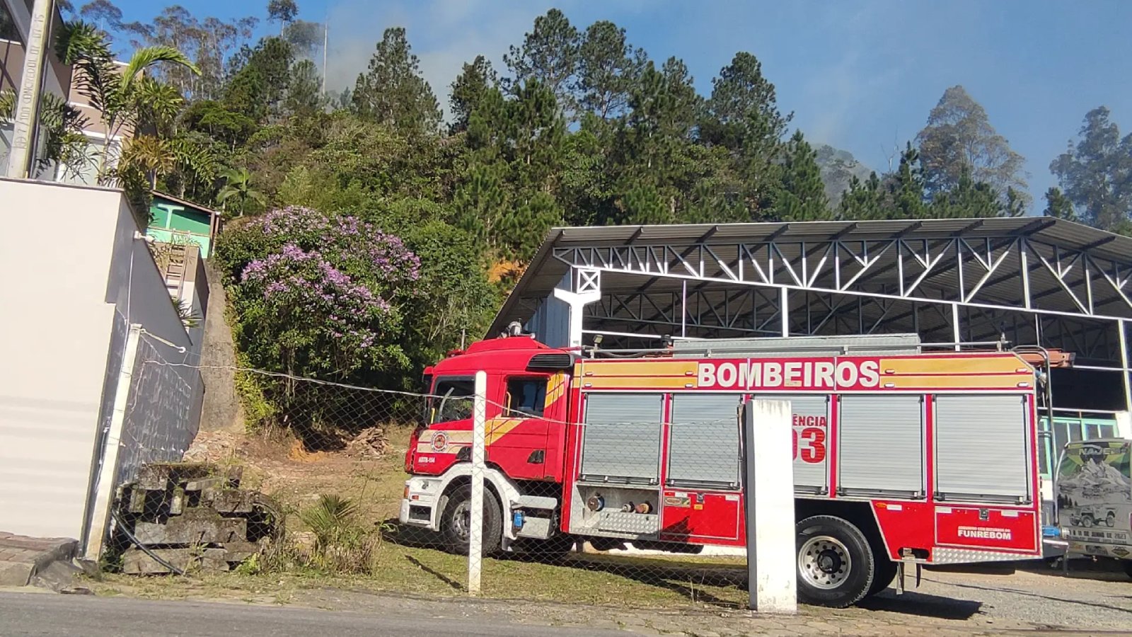 Na sequência, o Corpo de Bombeiros chegou ao local e iniciou o combate ao incêndio, realizando também o rescaldo para garantir que as chamas não voltassem.