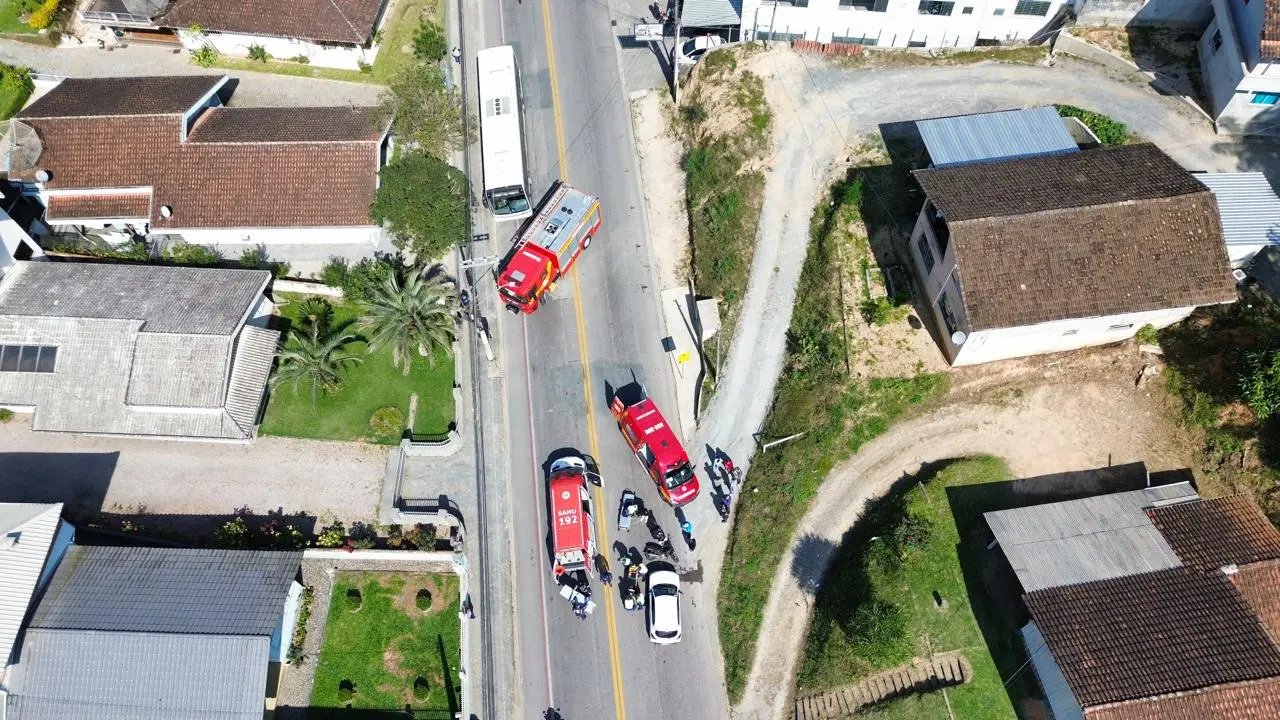 Equipes do Corpo de Bombeiros e do SAMU foram acionadas na tarde desta quinta-feira (15) para atender a um acidente entre um carro e uma moto em Brusque. A colisão ocorreu por volta das 13h26, na rua Florianópolis, no bairro Águas Claras.