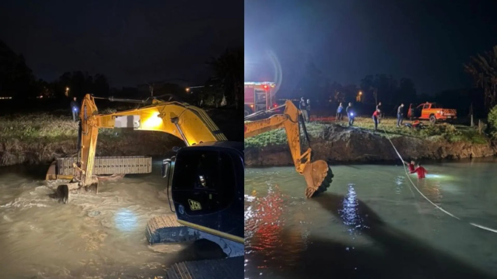 Apesar dos primeiros esforços, não havia sido possível resgatar a vítima. Porém, com o apoio de mais equipes dos bombeiros e de um cabo de força, foram realizadas buscas no rio. Uma outra retroescavadeira foi utilizada para mover a máquina afundada, facilitando a localização do corpo.