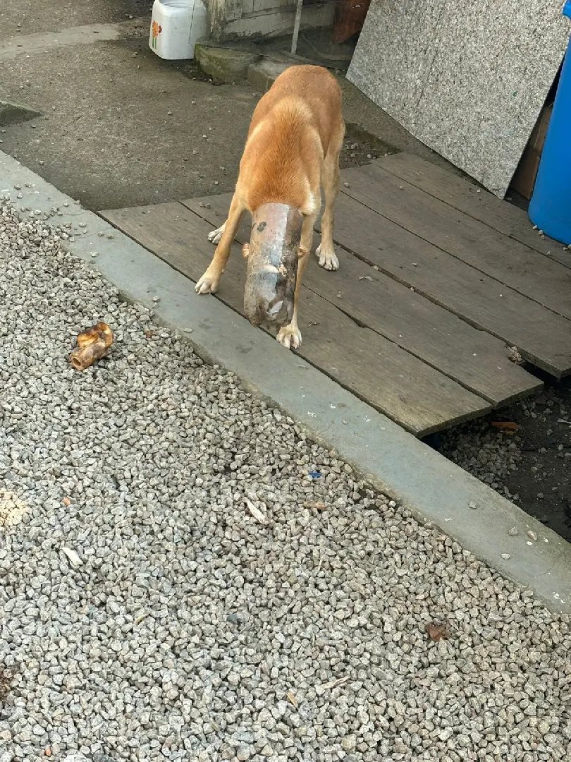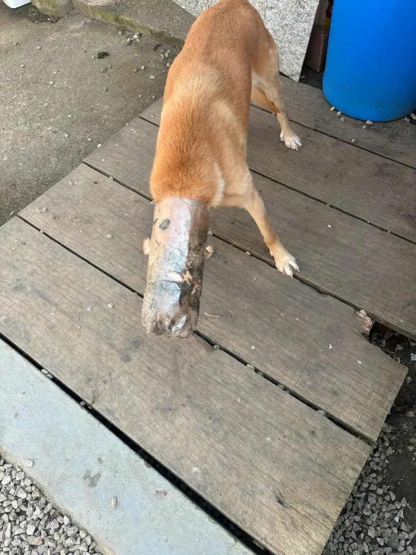 No final da manhã desta sexta-feira (16), o Corpo de Bombeiros Voluntários de Ilhota foi chamado para uma ocorrência inusitada. Um cachorro ficou com a cabeça presa dentro de uma garrafa pet.