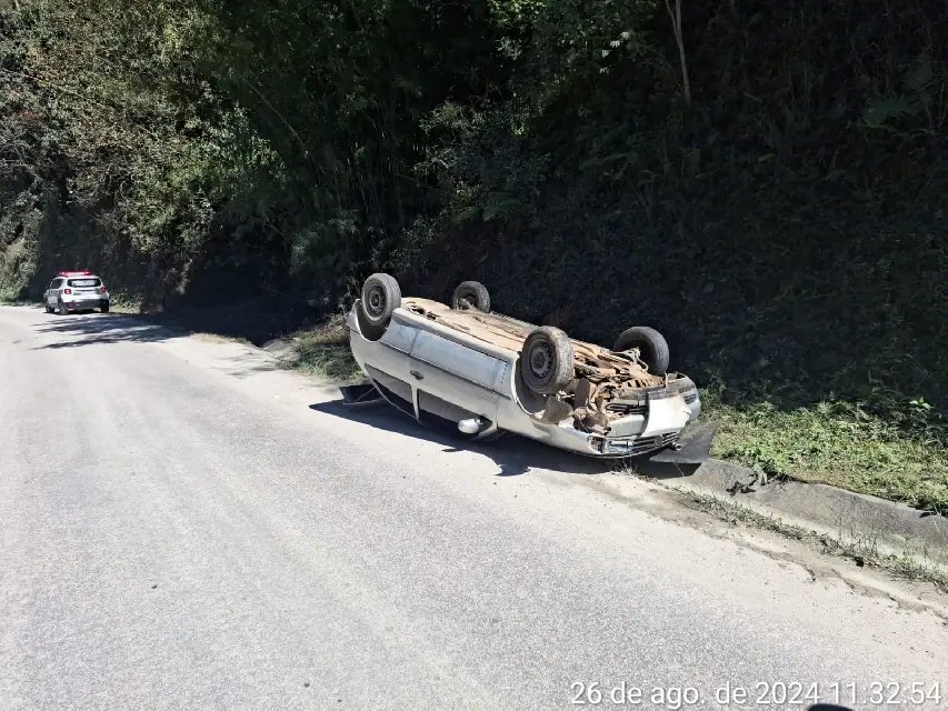 Segundo os bombeiros, ao chegarem ao local, encontraram o idoso, que era o motorista de um VW/Gol, ainda dentro do veículo. Ele estava consciente e orientado, mas relatava dores na região lombar. Ele perdeu o controle da direção em uma curva, o que resultou no capotamento.