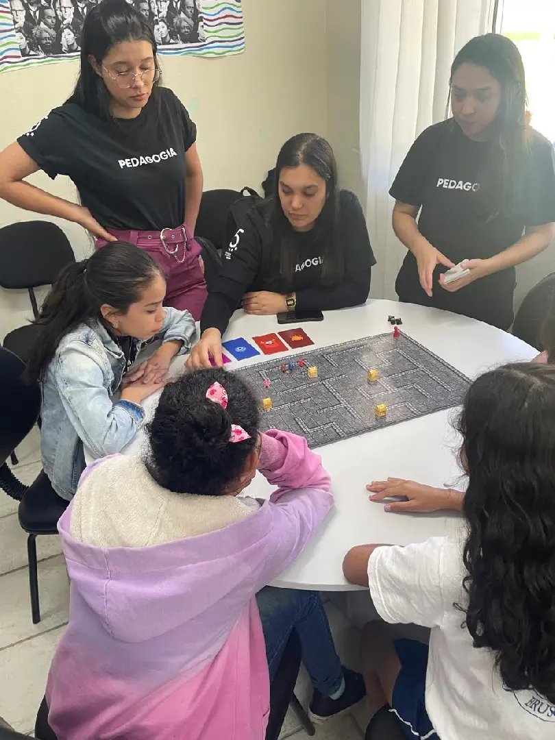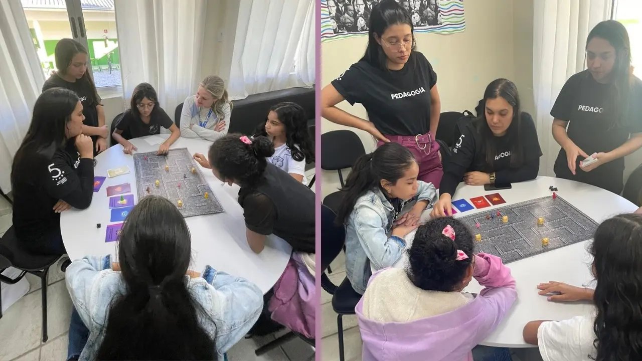 Tabuleiro, jogo da memória e labirinto foram alguns dos jogos educativos criados pelos acadêmicos de Pedagogia – Anos Iniciais da UNIFEBE para abordar com os alunos do 5º ano da Escola de Educação Básica Osvaldo Reis, os direitos fundamentais preconizados no Estatuto da Criança e do Adolescente – ECA. A atividade, resultado da Curricularização da Extensão, visou instigar os futuros pedagogos a, de forma lúdica, transformar os conteúdos de relevância social em algo atrativo e de fácil entendimento.