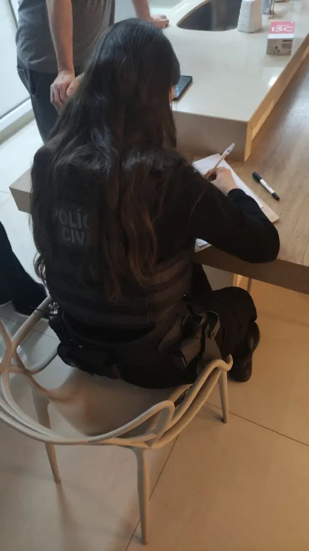 A Polícia Civil apreendeu dispositivos informáticos e demais elementos de interesse para investigação. Após demais diligências cabíveis, o inquérito será concluído e apresentado ao Ministério Público.