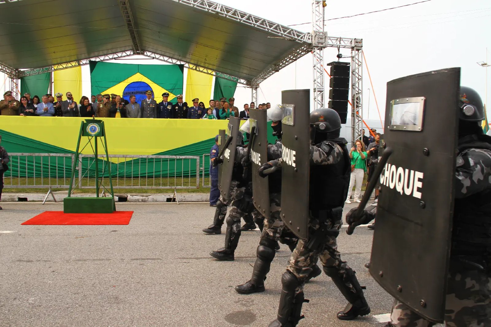 A PMSC participou de forma ordenada com o seu maior efetivo dos últimos cinco anos do Desfile Cívico. Dos 911 militares, 615 são alunos-soldados e 60 alunos-oficiais que usaram pela primeira vez a farda da corporação.