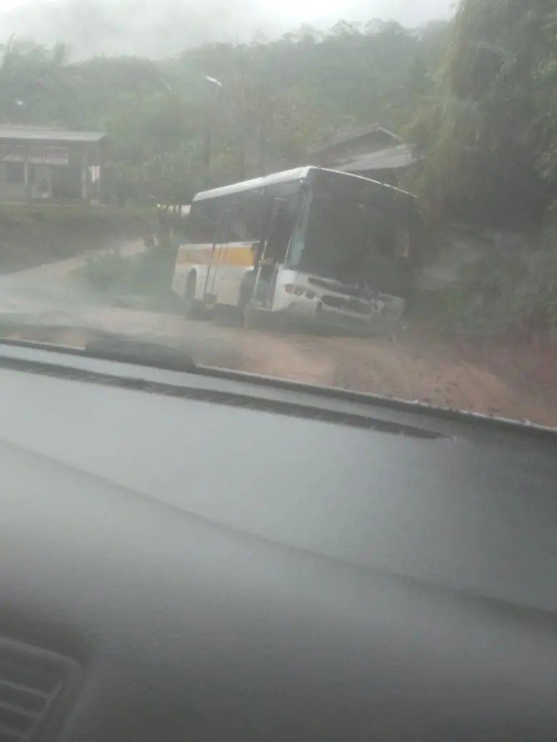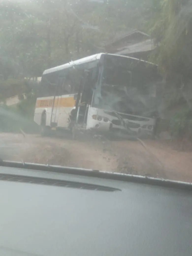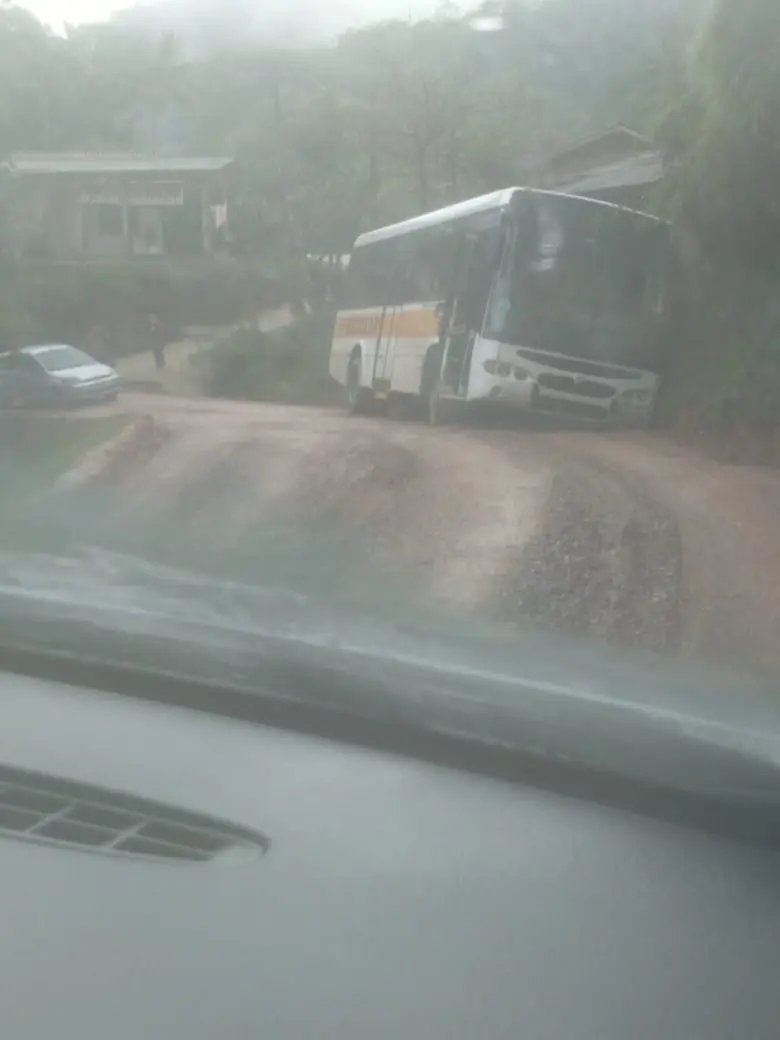 O ônibus, segundo relatos, estava transportando cerca de 10 alunos no momento. O motorista do veículo teria tentado subir o morro para buscar os estudantes, mas não conseguiu. O relato ainda diz que não há como realizar o retorno, momento esse em que o condutor “deu ré” e caiu na vala.