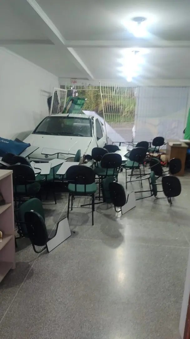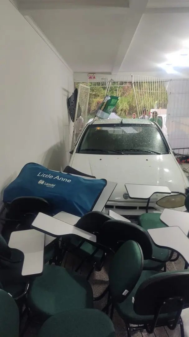 Um carro saiu de pista, atingiu outro que estava estacionado e os dois foram parar dentro da sala de um prédio. O caso aconteceu no início da tarde desta quarta-feira (2), no bairro Itoupavazinha, em Blumenau. Dentro de um dos carro havia um bebê de três meses.