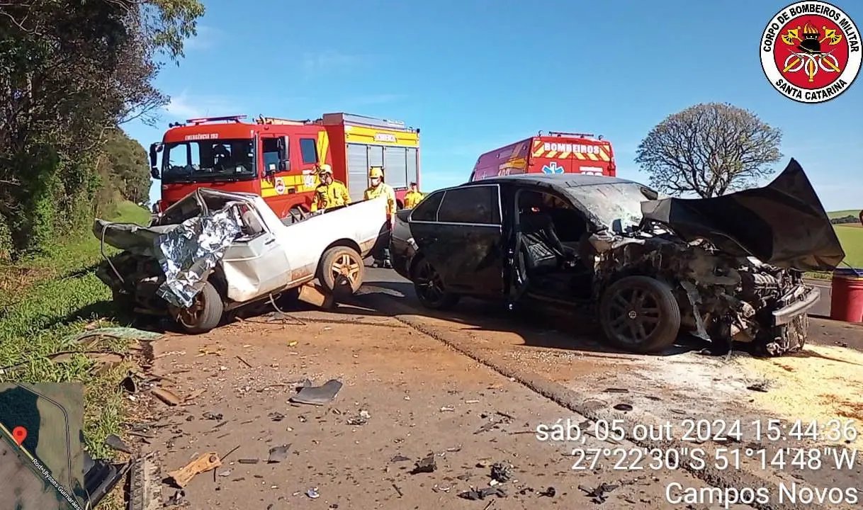 Duas pessoas morreram na tarde deste sábado (5), após uma colisão frontal entre dois carros na BR-282. O acidente ocorreu por volta das 15h20, em Campos Novos.
