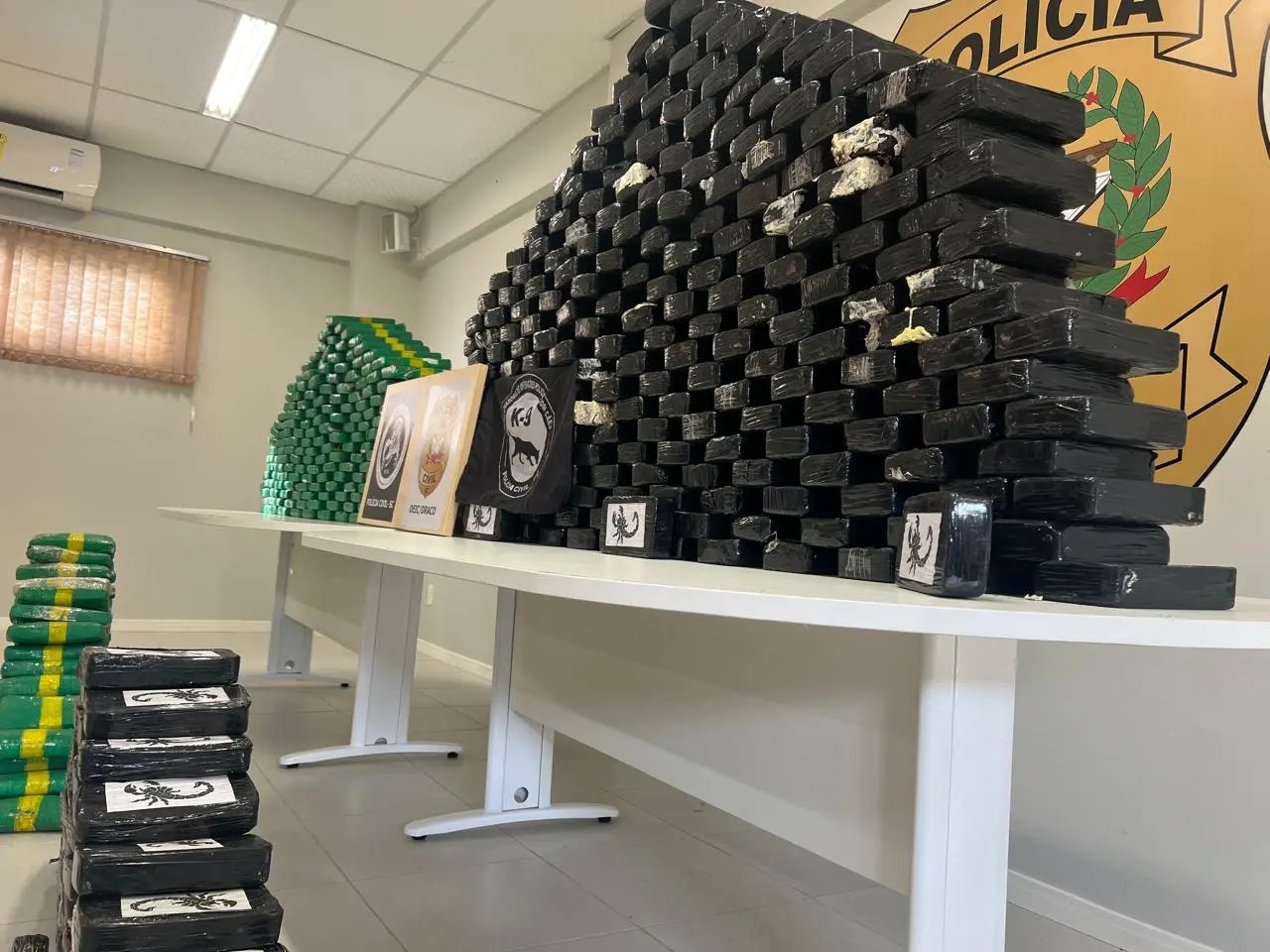 A Polícia Civil, por meio da DRACO/DEIC, abordou no município um caminhão Scania Bitrem enquanto chegava em um galpão para descarregar a droga. Ainda foram apreendidos mais três veículos com drogas.