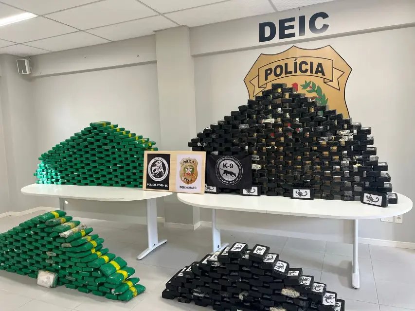 Um caminhão foi apreendido com 700 kg de cocaína e pasta base da droga na cidade de Santo Amaro da Imperatriz na tarde deste domingo (6).
