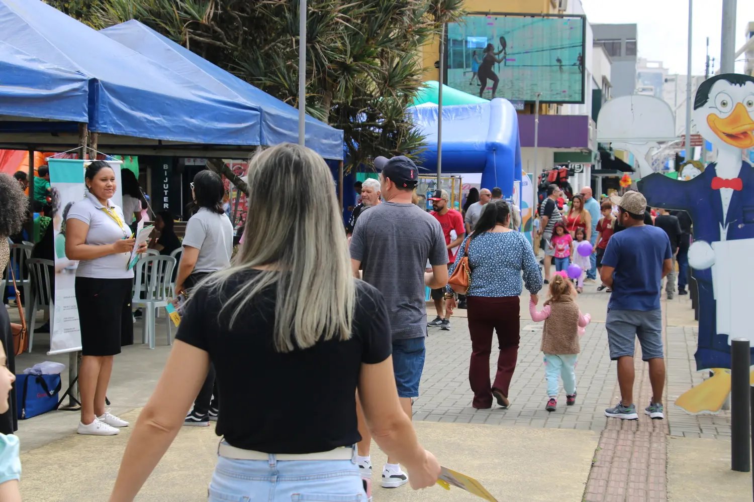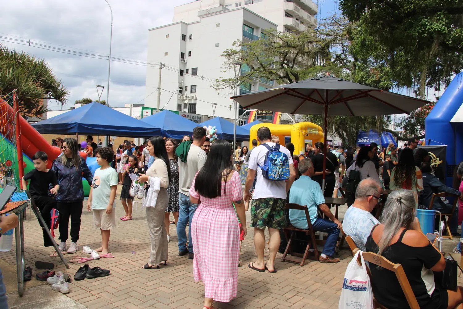 O presidente da CDL Brusque, Valter Kohler, ressalta a alegria em ver a praça lotada de famílias aproveitando os serviços ofertados. Ele também fala sobre o horário estendido do comércio, oportunizando à população adquirir o presente de Dia das Crianças.