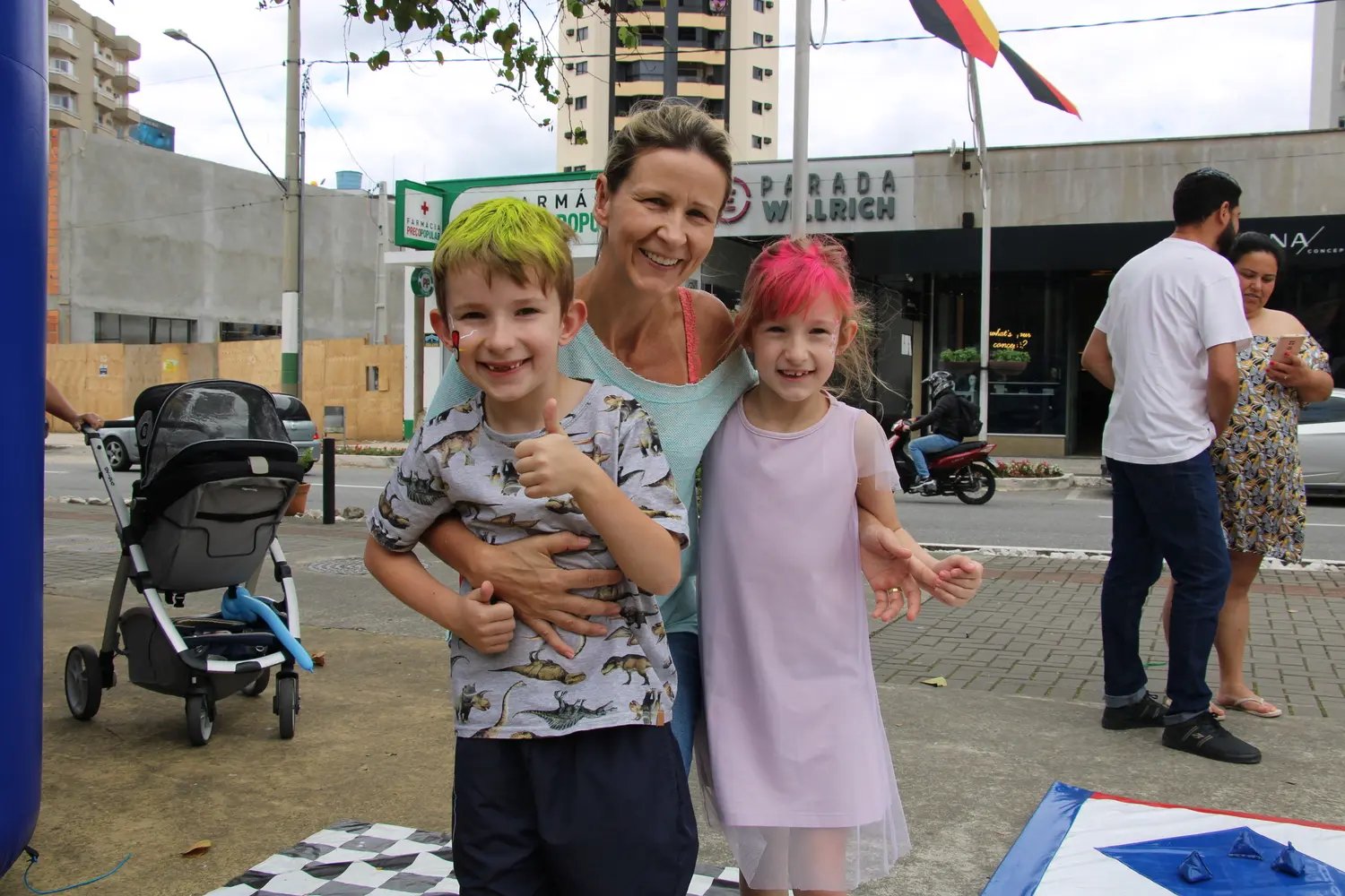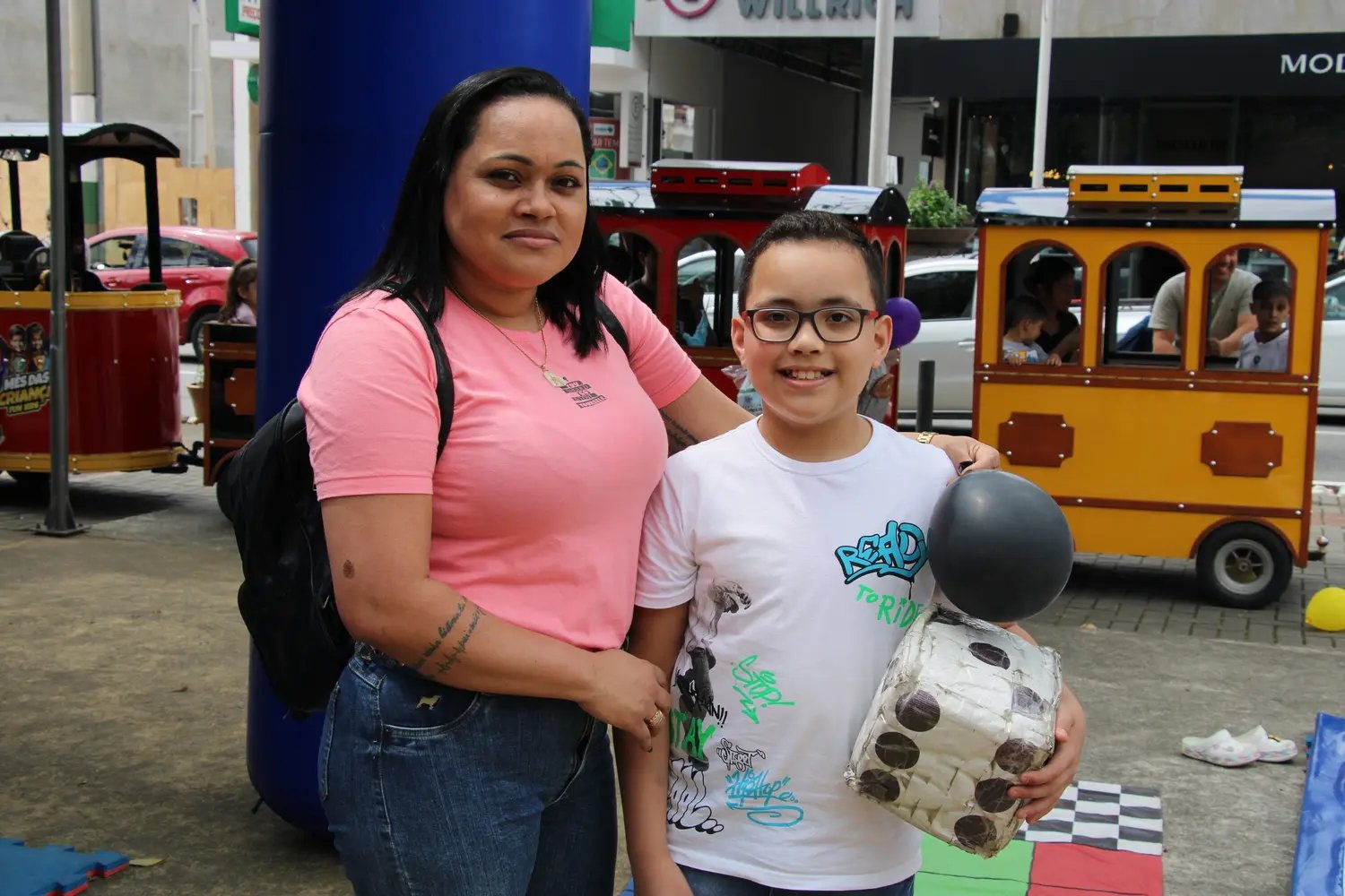 Quem também aproveitou as atrações foi Sandra Dognini, juntamente com os filhos Beatriz e Davi Luiz Hoffmann. A moradora do Centro compartilha que a família adora brincar com as atividades ofertadas na praça e que a ação já faz parte do calendário.