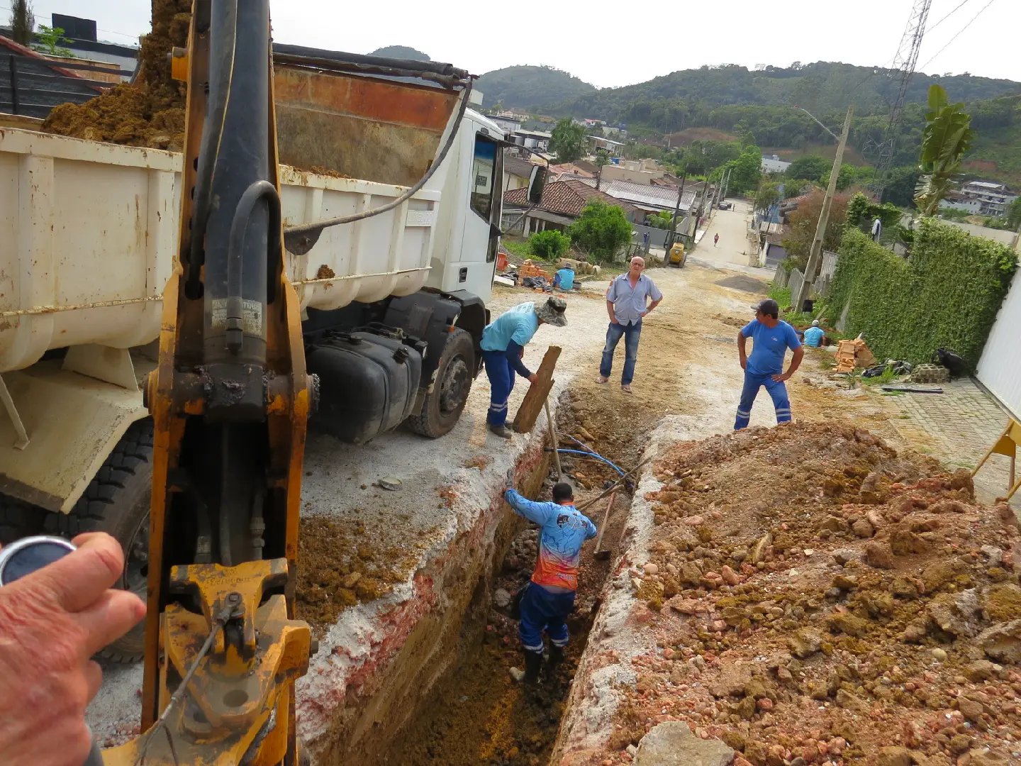 Por conta de uma tubulação antiga e em mau estado de conservação, a Secretaria de Obras e Serviços Urbanos decidiu por bem proceder com toda sua troca antes de iniciar os trabalhos de asfaltamento do Programa de Pavimentação Comunitária na rua Eberhardt Hort, em Dom Joaquim.