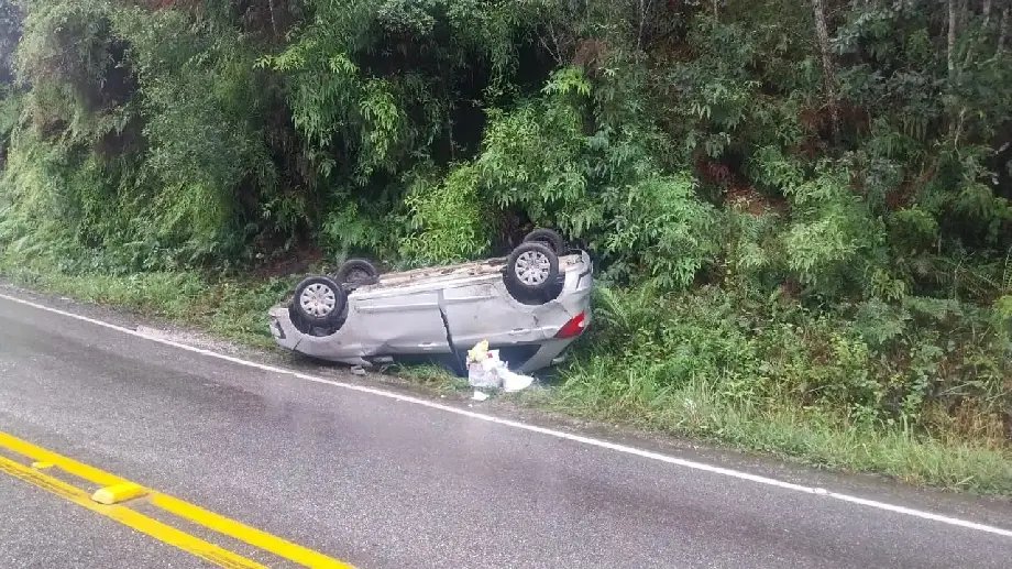Segundo informações da Polícia Militar Rodoviária (PMRv), no local a guarnição constatou que um Ford/Ka, conduzido por uma mulher de 34 anos, trafegava pela rodovia no sentido Nova Trento a São João Batista, quando, nas proximidades do km 142, a motorista perdeu o controle do veículo, saiu da pista e colidiu contra um barranco.