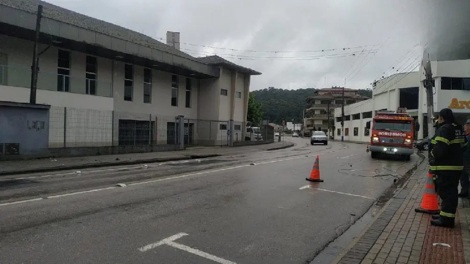 Na tarde desta sexta-feira (11), o Corpo de Bombeiros de Guabiruba foi acionado após parte da fiação de um poste cair sobre a via. O fato ocorreu por volta das 15h, na rua 10 de Junho, no bairro Centro.