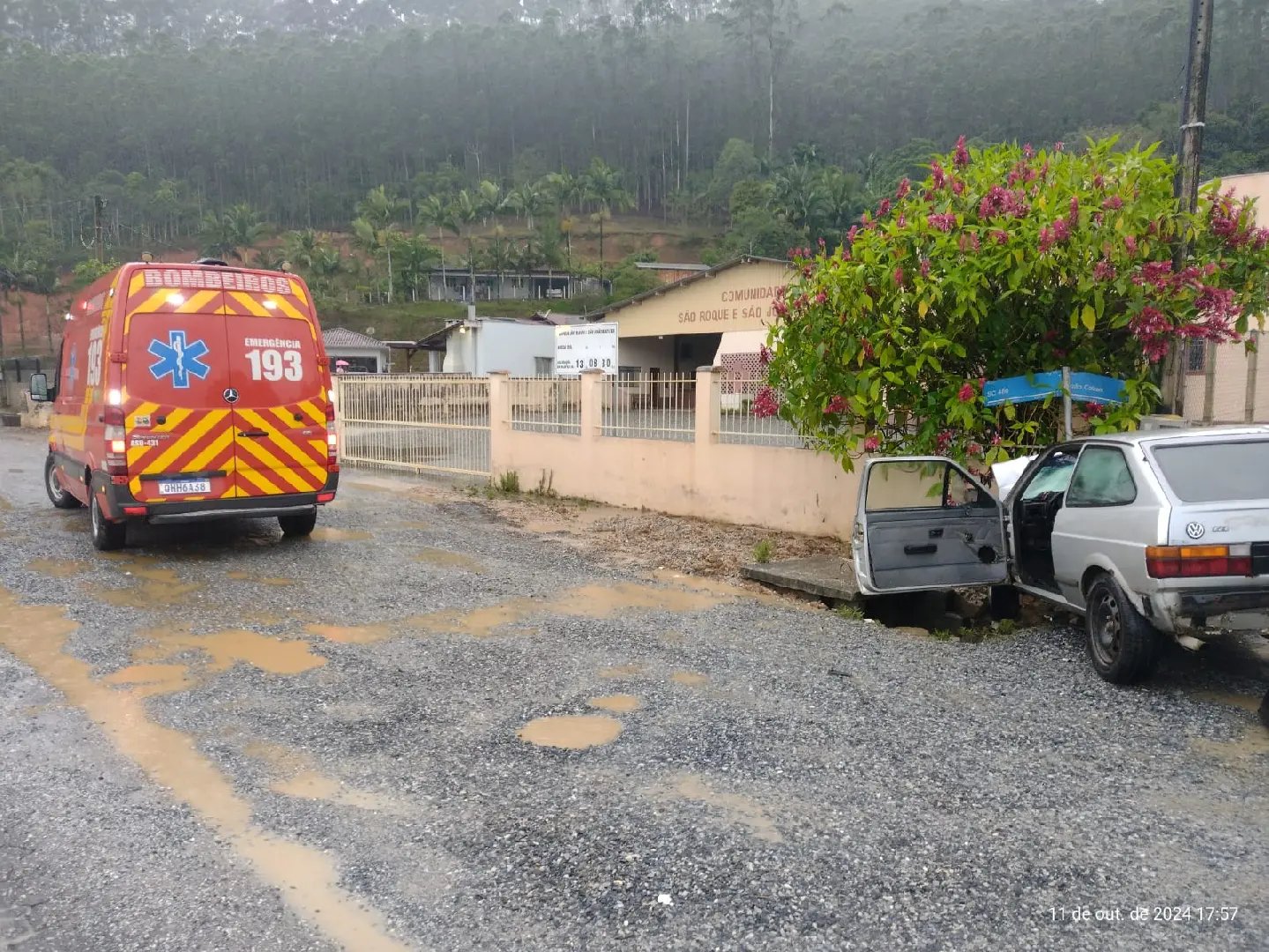 O outro carro envolvido, um VW Gol com placas de Guabiruba, era conduzido por um homem de 53 anos, que foi encontrado consciente e orientado, sentado no banco do motorista sem o cinto de segurança. Ele relatou fortes dores no tórax, resultantes do impacto com o volante, e apresentava um pequeno corte na língua.