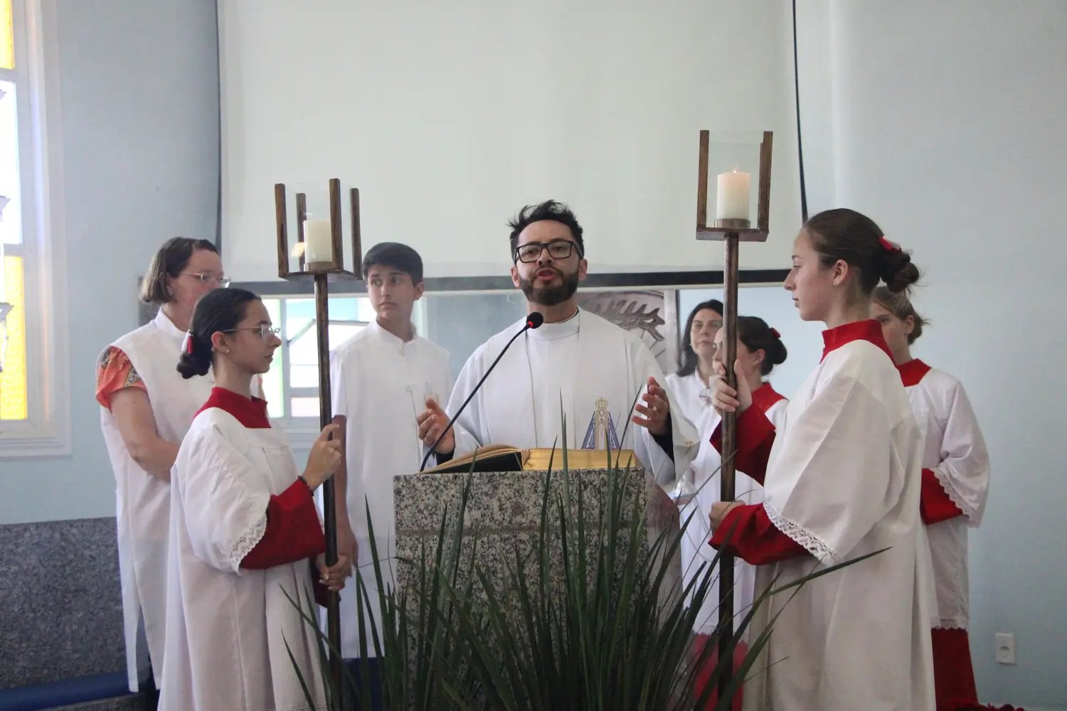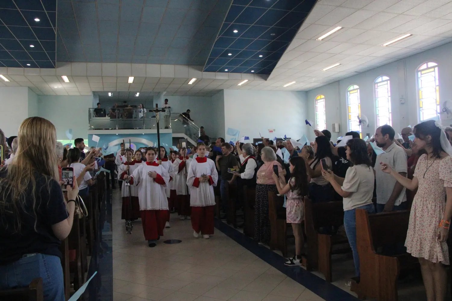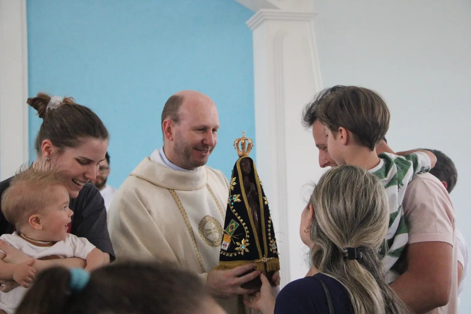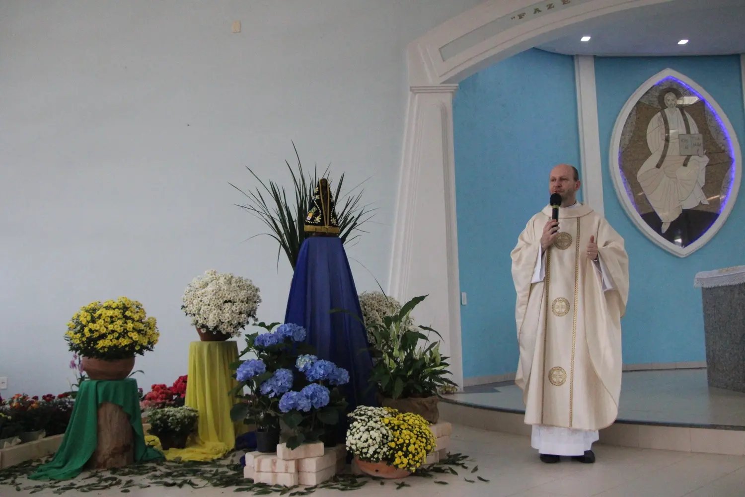 O pároco da Paróquia São Luís Gonzaga, padre Diomar Romaniv, presidiu a missa, concelebrada pelo padre Rodrigo Tascheck. O coordenador da comunidade, Éder Aparecido de Souza, teve a missão de conduzir até o altar a imagem de Nossa Senhora Aparecida, que estendeu seu manto protetor sobre os presentes.