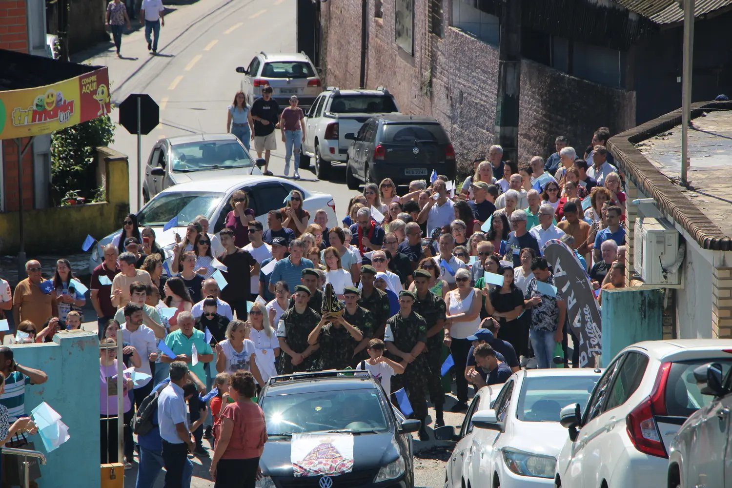 O sábado, 12 de outubro, foi de homenagens para a padroeira do Brasil: Nossa Senhora Aparecida. Centenas de devotos lotaram a igreja do bairro Steffen, em Brusque, para celebrar a Mãe de Jesus com procissão, missa solene e confraternização em comunidade.
