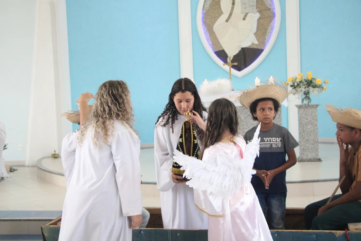 Ao fim da celebração, o padre Diomar chamou as crianças para uma bênção especial, já que neste dia 12 de outubro, também é celebrado o dia delas. “Hoje é um dia de festa, de alegria, e entre os homenageados estão as crianças, que são não só o futuro da igreja, mas o presente. É tão bonito vê-las aqui presentes nas nossas missas com o carinho e a alegria que é própria da criança”.