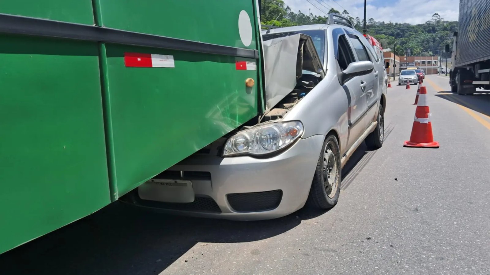 Uma colisão entre um ônibus e um carro resultou em uma mulher ferida na tarde desta quarta-feira (16), por volta de 12h05. O acidente ocorreu na Rua Florianópolis, no bairro Primeiro de Maio.