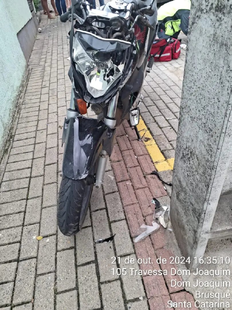 Na tarde desta segunda-feira (21), o Corpo de Bombeiros de Brusque foi acionado para atender a uma ocorrência de queda de moto. O acidente aconteceu por volta das 16h10, na Travessa Dom Joaquim.