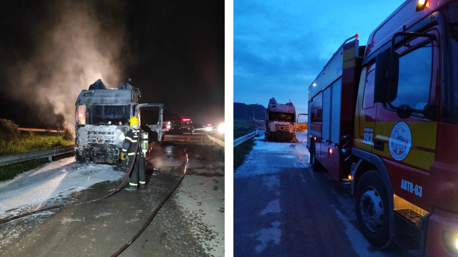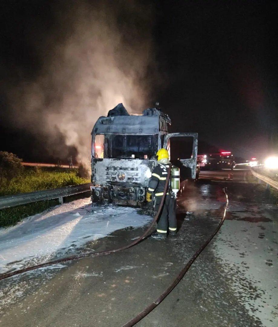 O veículo pegou fogo na via no sentido Ilhota à Gaspar. Segundo o Corpo de Bombeiros, as chamas atingiram uma Volkswagen modelo 25370, em que parte da cabine estava totalmente em chamas. Não havia carga na carreta.