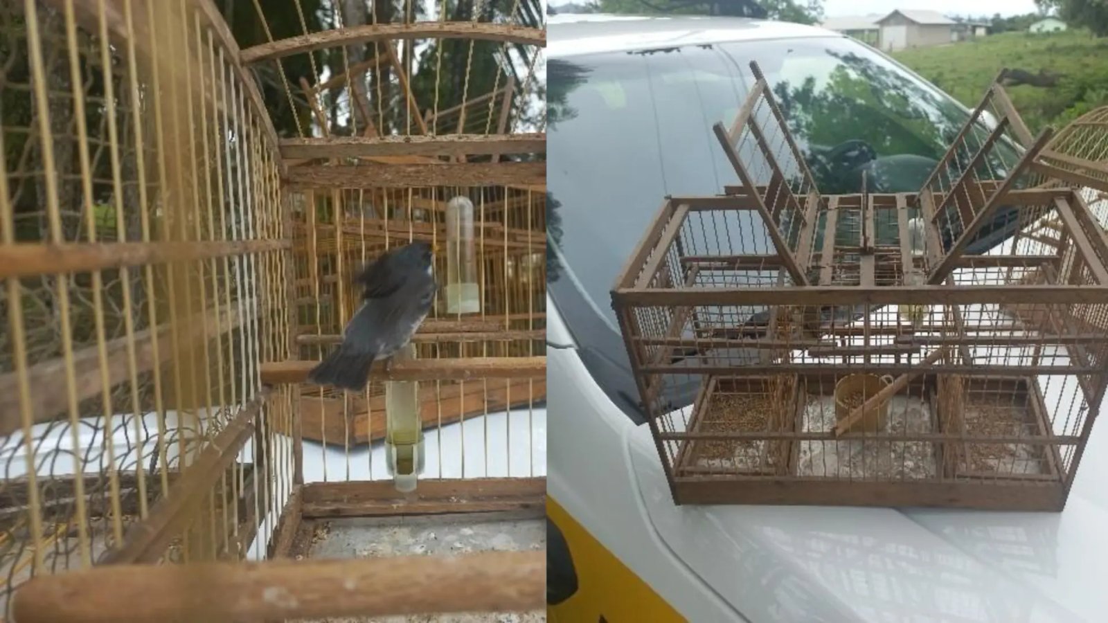 Segundo a Polícia Militar Rodoviária, no local, a guarnição constatou duas gaiolas postas às margens da rodovia, tendo no interior delas dois pássaros da espécie coleirinha. Os covis possuíam alçapões para apanhar mais aves.