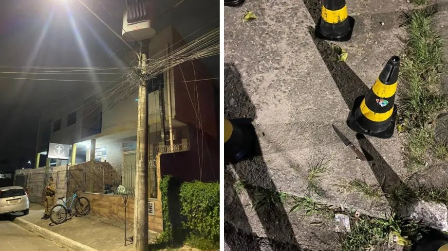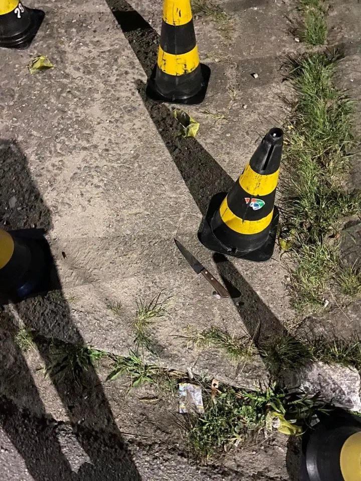 Por meio das imagens anexadas à matéria, é possível ver a cena do ocorrido e a faca empregada no crime.